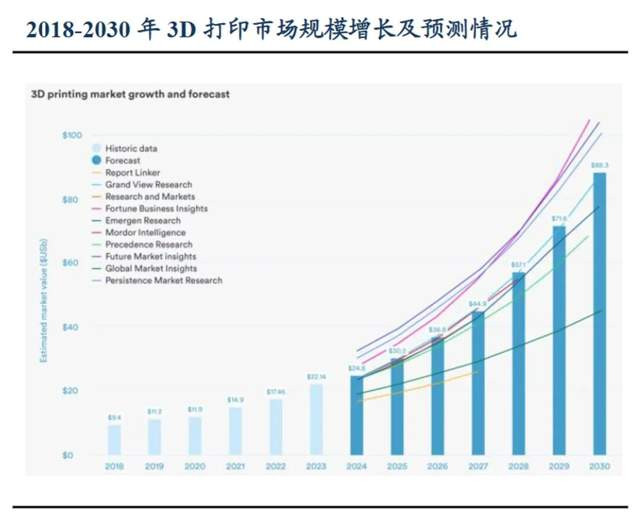 把柄灼识研究的数据,2024年耗尽级3D打印全球商场界限为41亿好意思元,瞻望到2029年将飙升至169亿好意思元,年复合增长率高达33.0%。