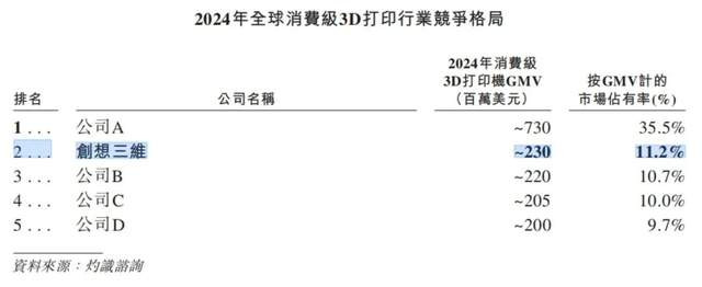 据招股书,2024年拓竹GMV为7.3亿好意思元,市占率高达35.5%,而同期创念念三维仅为2.3亿好意思元,市占率11.2%。