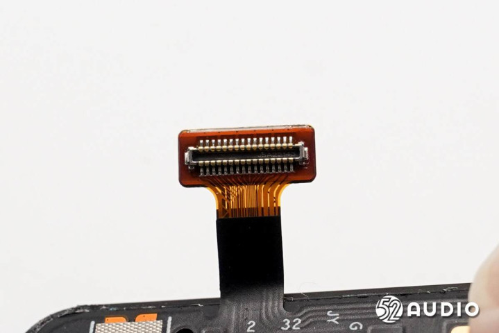 触摸适度排线与屏幕排线衔接的ZIF衔接器特写。