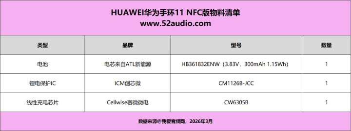 终末附上HUAWEI华为手环11 NFC版的已知物料清单,方便大家查阅。