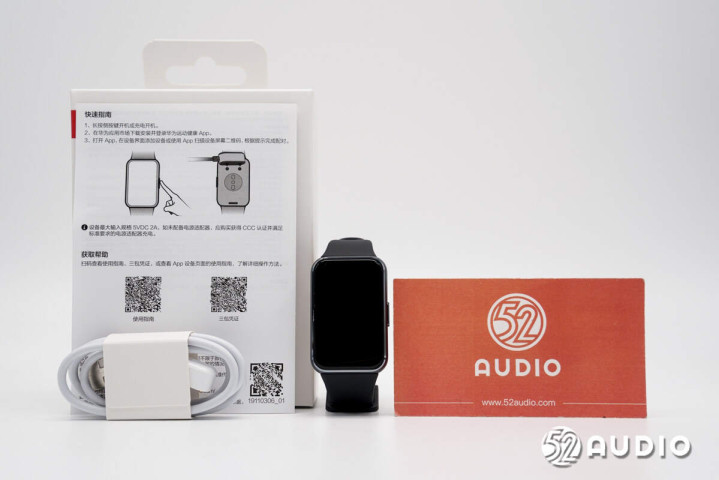 取出包装盒里面统共物品,包括了智高手环、充电线和快速指南。