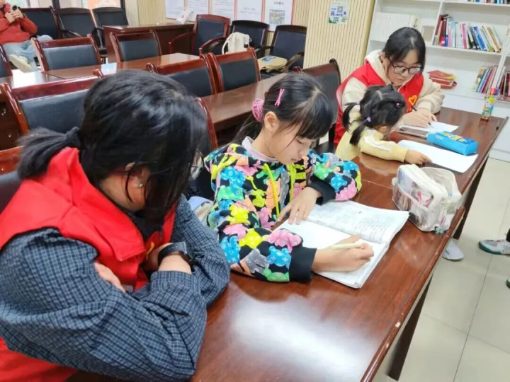 3月的晨曦洒进苏家街社区行径室,桌上摆着试卷,也摆着彩纸和扭扭棒。