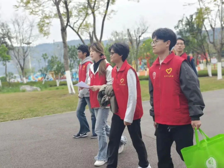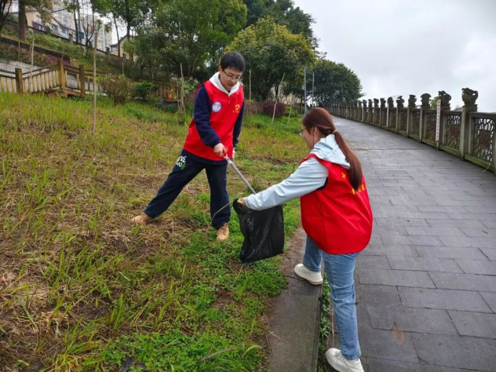3月13日,红马甲的身影穿梭在东津沱公园的步谈与长廊之间