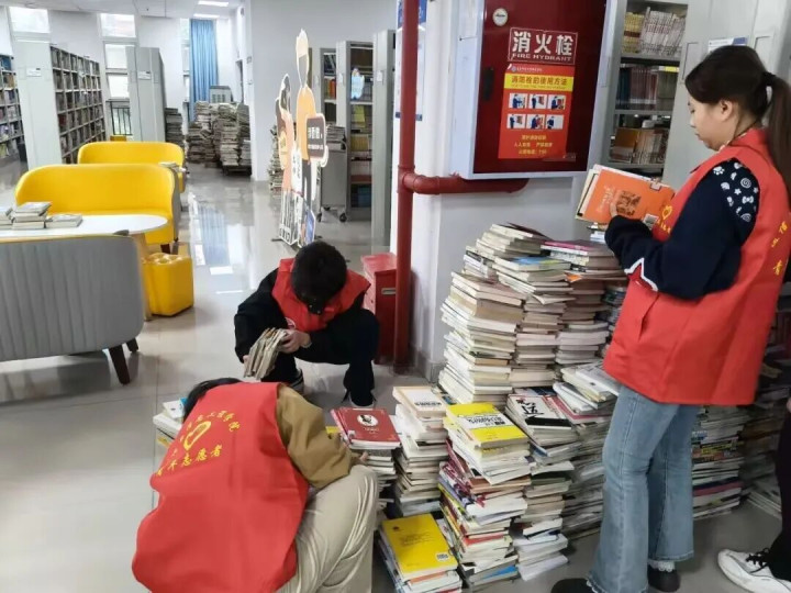 3月13日,藏书楼的午后,一群红马甲正偷偷在书架间艰苦着。