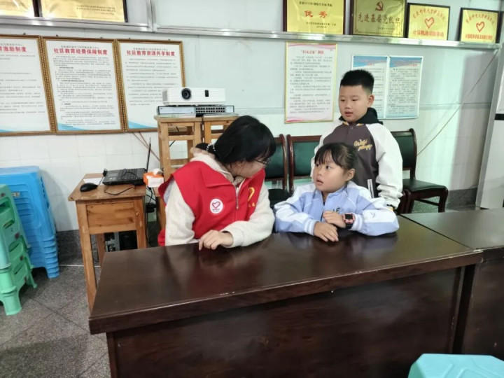 3月21日,花滩社区行径室里,课业辅导、护牙宣讲、意念念游戏轮替上场。