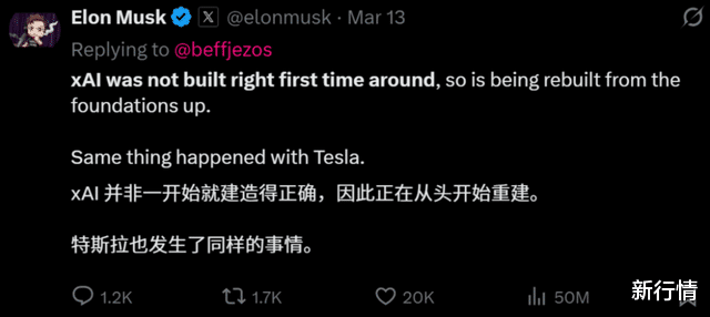 对此,马斯克在X上回复示意:xAI(指导班子)一启动就莫得建好,是以正在从地基启动重建。