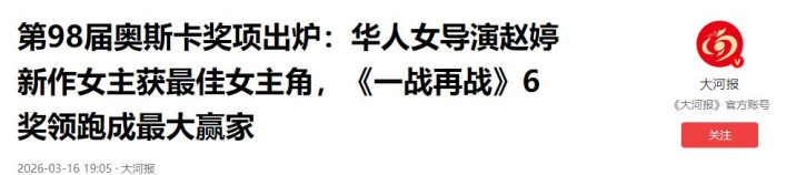 大河报|第98届奥斯卡奖项出炉:华东谈主女导演赵婷新作女主获最好女主角,《一战再战》6奖领跑成最大赢家