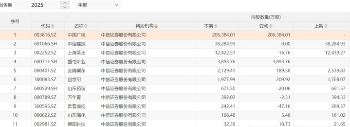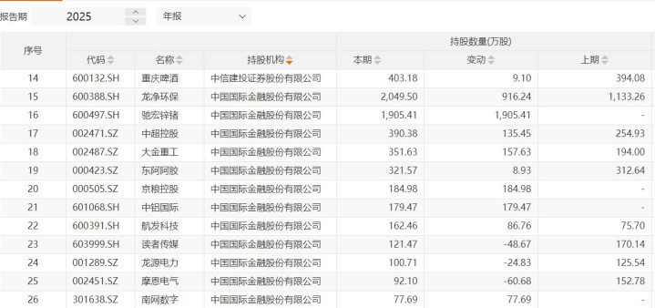 中金公司也对周期股进行了布局,新进驰宏锌锗约1905万股、中铝国外179.47万股。端正2025年年末,中金公司共计出当今11家上市公司推动名单中。