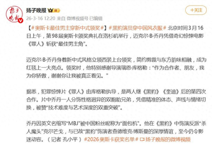 3月16日,第98届奥斯卡受奖礼爆出亮点,新晋影帝迈克尔·B·乔丹并立孤身一人新登科行头登台,瞬息抢走了通盘聚光灯。这波操作,被网友戏称为“东方好意思学在好莱坞中心的一次丽都逆袭”。