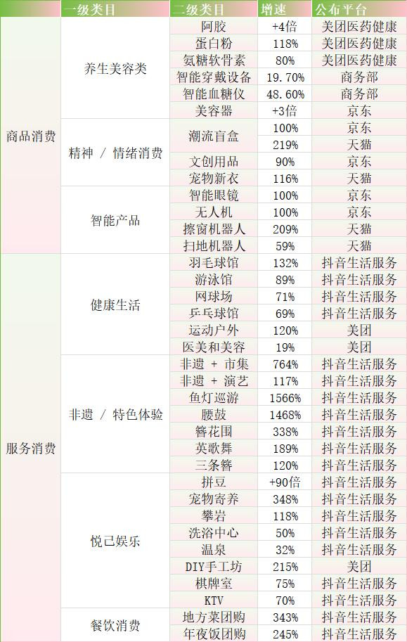 贵州、青海、甘肃、江西等下千里市集占比较高的地区,日用品、文化办公用品、通信器材、体育文娱用品等偏体验型和文娱型浪掷增长杰出,非刚需浪掷品正徐徐取代以往以衣、食为主的传统节日浪掷结构,成为新的增长点。
