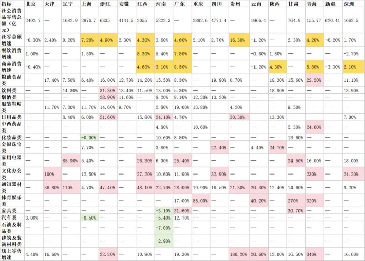 同期,以三、四线城市为主的省份则增长亮眼,如江西、青海社零增速均高出4%,贵州更是录得16.3%的高速增长。
